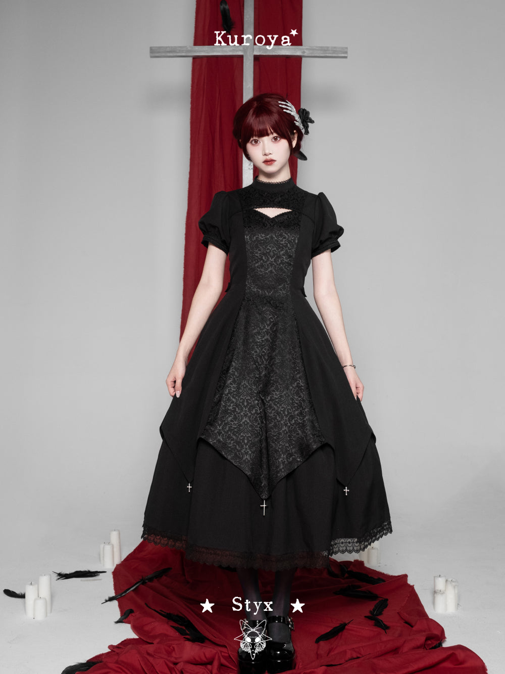 • Eight hanging metal cross pendants enrich the look with a strong gothic aesthetic.
